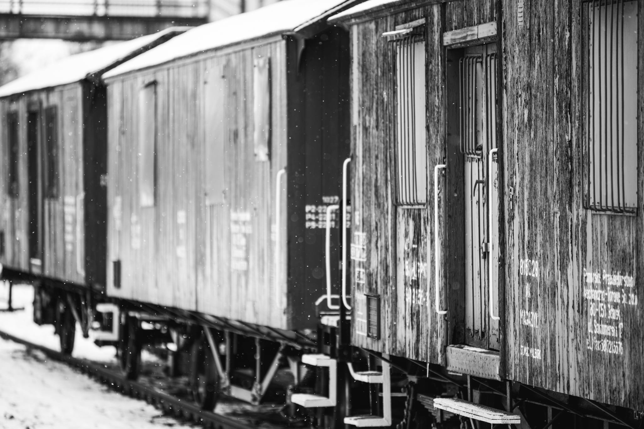 Nach dem Öffnen der Wagenplane sah man weiter nichts als die schemenhaften Umrisse von Güterwagen und, durch die Scheinwerfer der Transportautos beleuchtet, Gestalten, die sich langsam in Richtung der Waggons bewegten. Jetzt gab es keine Zweifel mehr. Hier musste ein Sammelplatz für die lebende Fracht sein, die nach Russland transportiert werden sollte. [...] Vorerst waren wir alle wie gelähmt, aus Angst, vor Erschöpfung, aber auch durch den großen Kummer. Keiner sprach ein Wort, nur leises Schluchzen war zu hören. Ich konnte nicht weinen! Vielleicht lag es daran, dass ich noch so jung war und meine Gedanken auch in dieser erbärmlichen Situation nur um einen Gedanken kreisten - wie komme ich hier heraus?